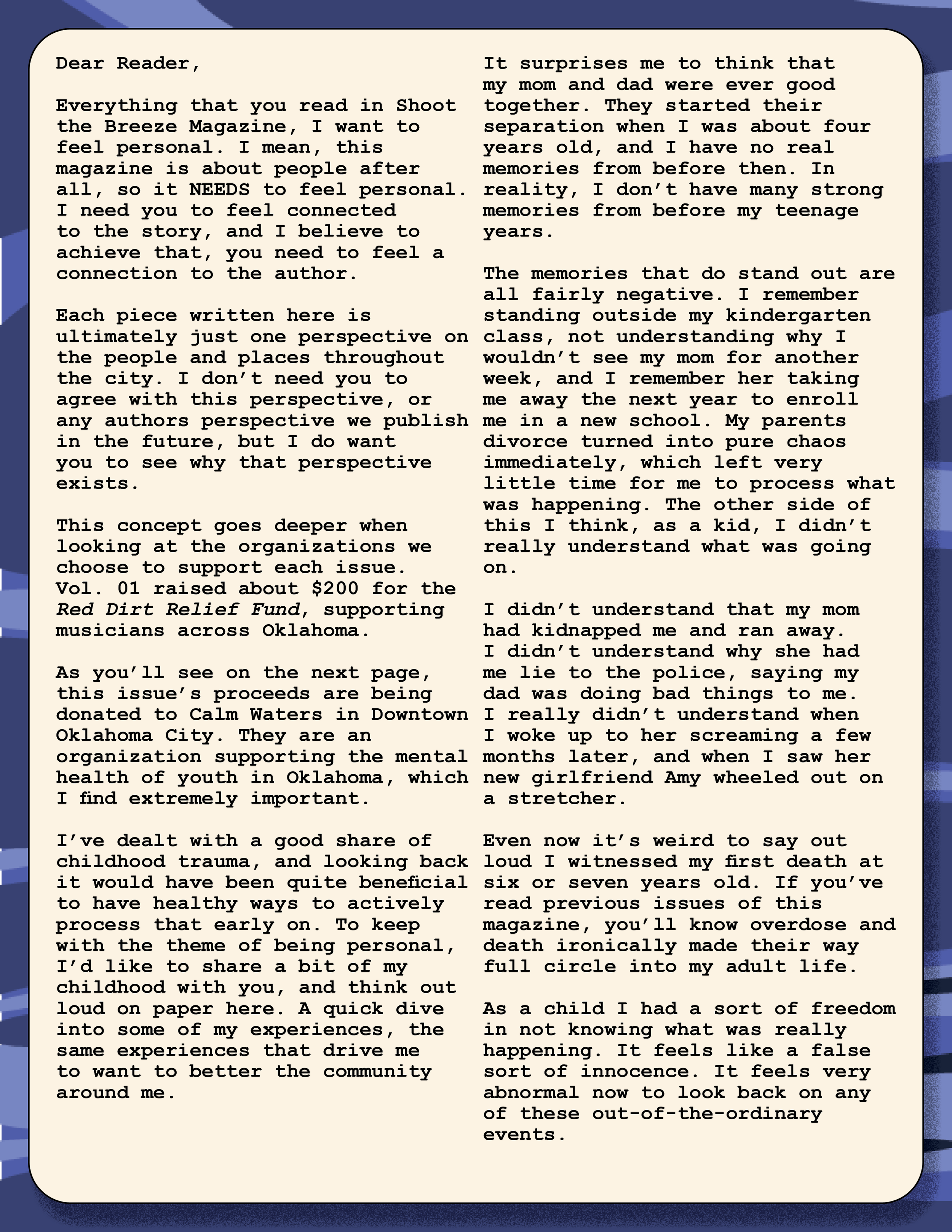 This magazine is for the curious, the creative, the overlooked, and the everyday legends. Whether I’m interviewing local artists, investigating education in Oklahoma, or spotlighting voices you might not hear elsewhere — I want you to feel connected, inspired, and maybe even challenged.